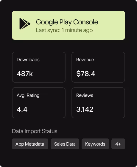 The platform tracks what your competitors are up to:what creatives they're testing, what keywords they're using, how they're changing their ASO, and how often they release updates.